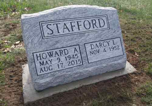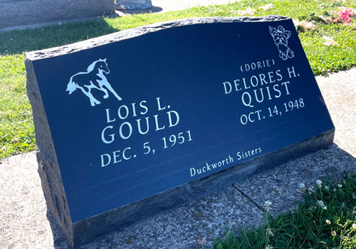 The advantage of a slanted grave marker, as opposed to a lawn-level or bevel grave marker, is that it is easily visible from a distance. While not tall enough to be considered an upright monument, a slanted gravestone still stands out in a cemetery because the granite is cut to sit at a steep angle. It can be placed on a solid granite base or be designed to sit directly on the ground.