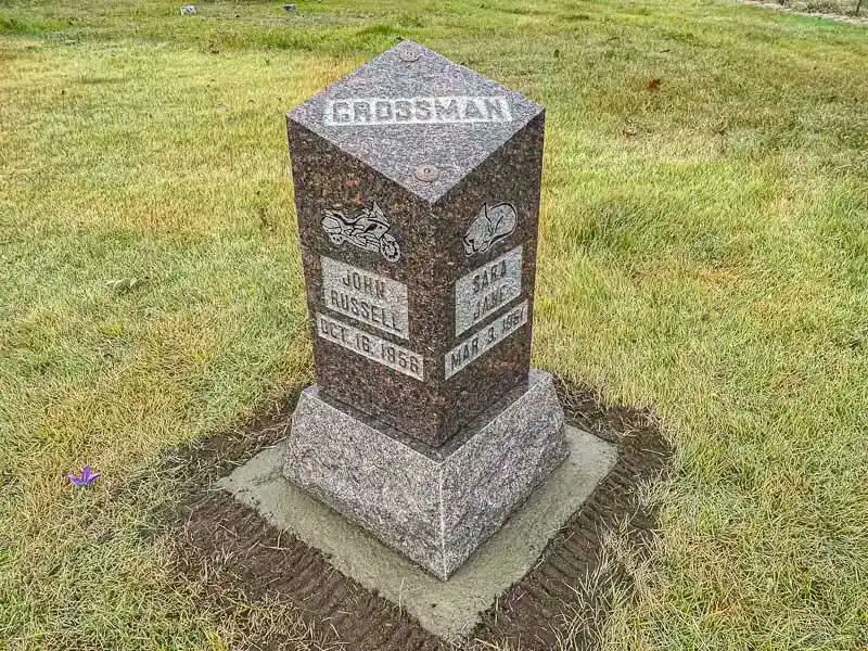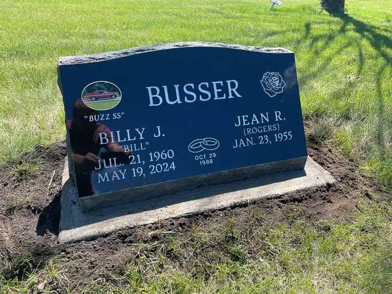 The advantage of a slanted grave marker, as opposed to a lawn-level or bevel grave marker, is that it is easily visible from a distance. While not tall enough to be considered an upright monument, a slanted gravestone still stands out in a cemetery because the granite is cut to sit at a steep angle. It can be placed on a solid granite base or be designed to sit directly on the ground.