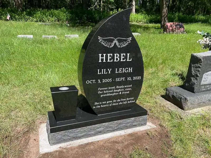 Upright headstones are the most common type of cemetery memorial used today. There are many design options to choose from. The best way to choose what is right for you and your family is to stop in and let us help.